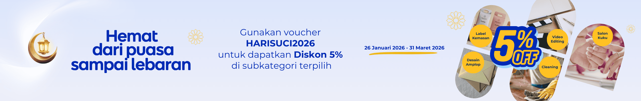 Gunakan kode promo HARISUCI2026 dan nikmati Diskon 5% untuk transaksimu.