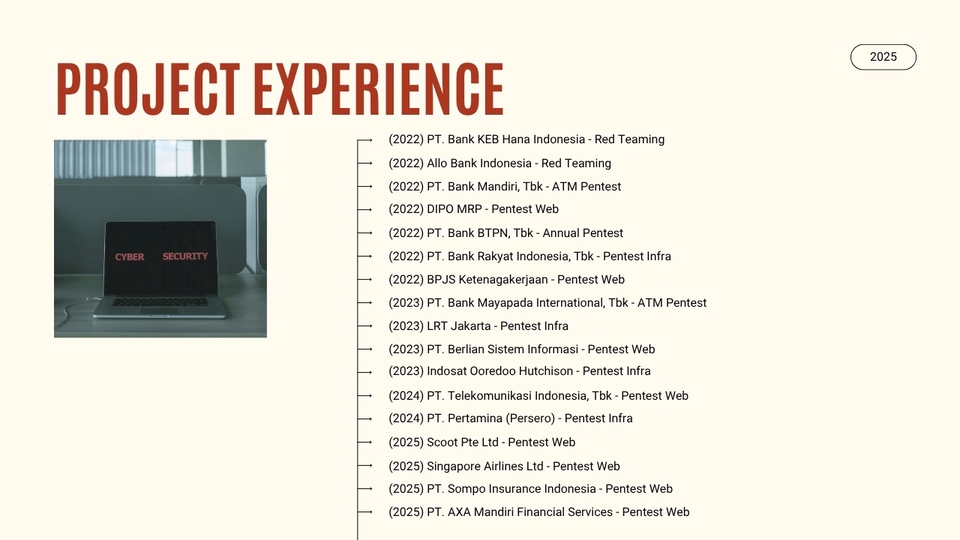 Saya adalah seorang Penetration Tester berpengalaman selama 3 tahun.