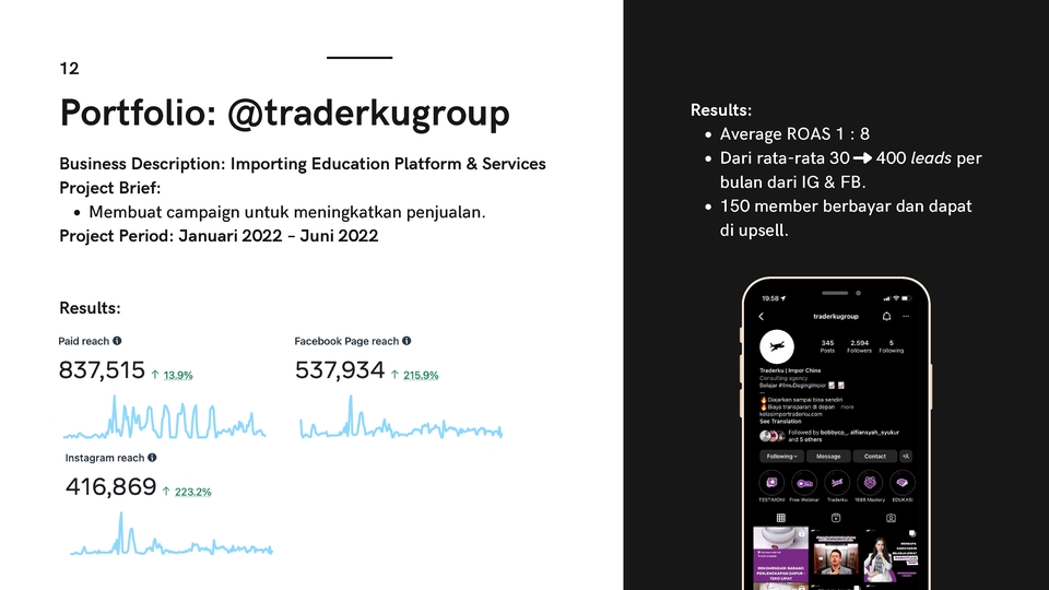 Rp4,5 jt- Ads management: Up to 2 campaigns/month (services included: ads testing; campaign monitoring), monthly ads report. - Ads content: Up to 5 ads content briefs & Up to 5 content execution.