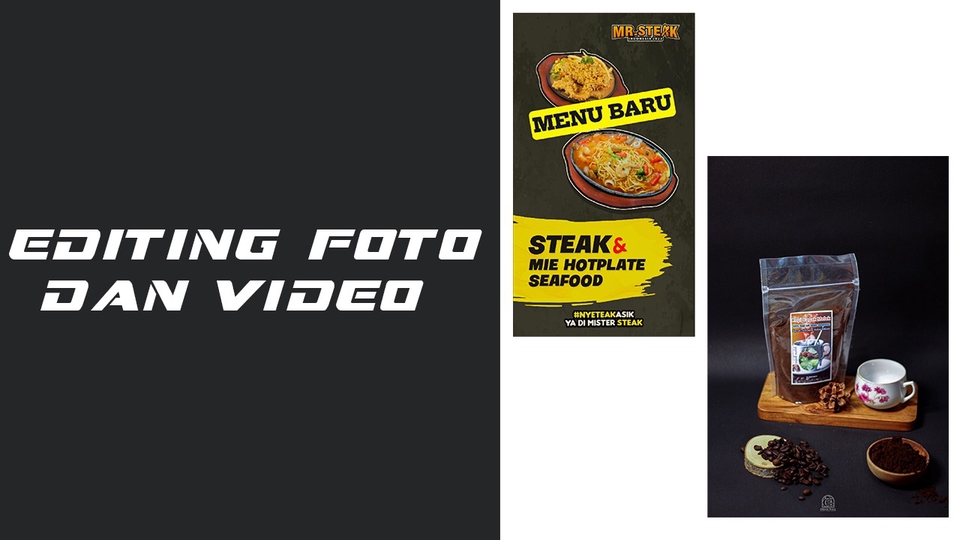 melayani editing foto ataupun editing video untuk berbagai keperluan sudah berpengalaman dalam editing foto dan video, saya menggunakan aplikasi adobe photoshop dan adobe lightroom untuk editing foto dan menggunakan aplikasi capcut dan adobe premier untuk mengolah video langkah kerja : 1. berdiskusi kebutuhan dan gaya editing 2. memberikan estimasi biaya dan waktu pengerjaan untuk 1 project 3. apabila setuju klien mengirimkan bahan video ataupun foto 4. Mulai mengerjakan project dan selalu memberitahukan progres kepada klien 5. Mengirimkan hasil dan berdiskusi untuk segala revisi
