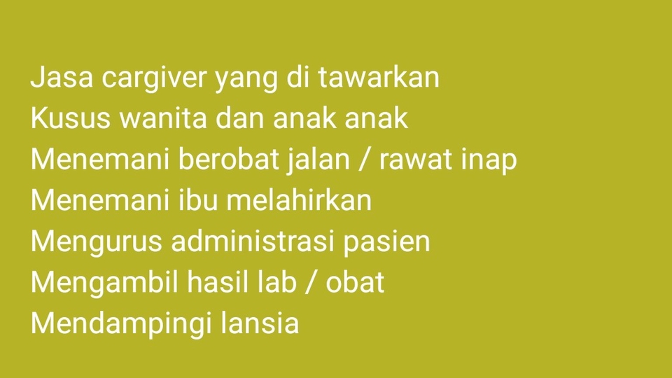 open jasa jaga pasien area semarang dan sekitarnya menemani ibu persalinan pendampingan lansia non alkes mengambil hasil lab dan jadwal kemo menemani pasien rawat inap mengurus dan mendampingi pasien karena keluarga sibuk bekerja dan tidak ada yang menemani