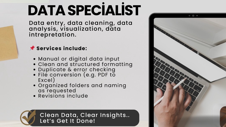 Pengelolaan data mulai dari input data manual maupun digital, pembersihan dan penataan data agar lebih rapi dan terstruktur, hingga pemeriksaan duplikasi dan perbaikan kesalahan. Format data dapat dirapikan sesuai kebutuhan, termasuk konversi file seperti PDF ke Excel serta pengaturan folder dan penamaan dokumen agar lebih mudah ditelusuri. Setiap proses dilakukan dengan fokus pada ketelitian, konsistensi, dan kesiapan data untuk digunakan dalam laporan, analisis, atau kebutuhan operasional lainnya, dengan revisi tersedia sesuai permintaan