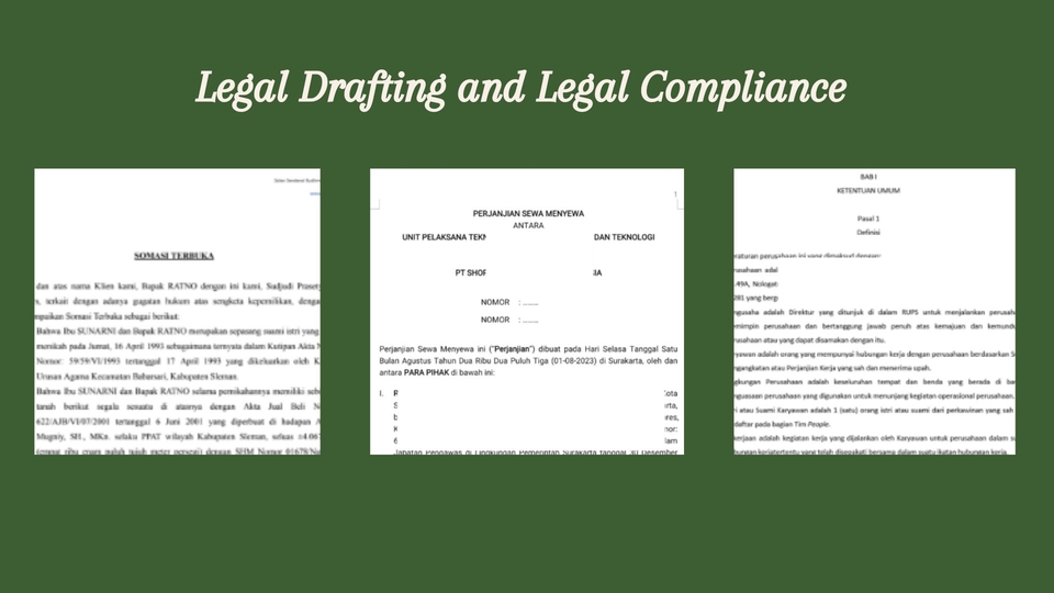 Konsultasi Hukum, Pembuatan Perjanjian, dll