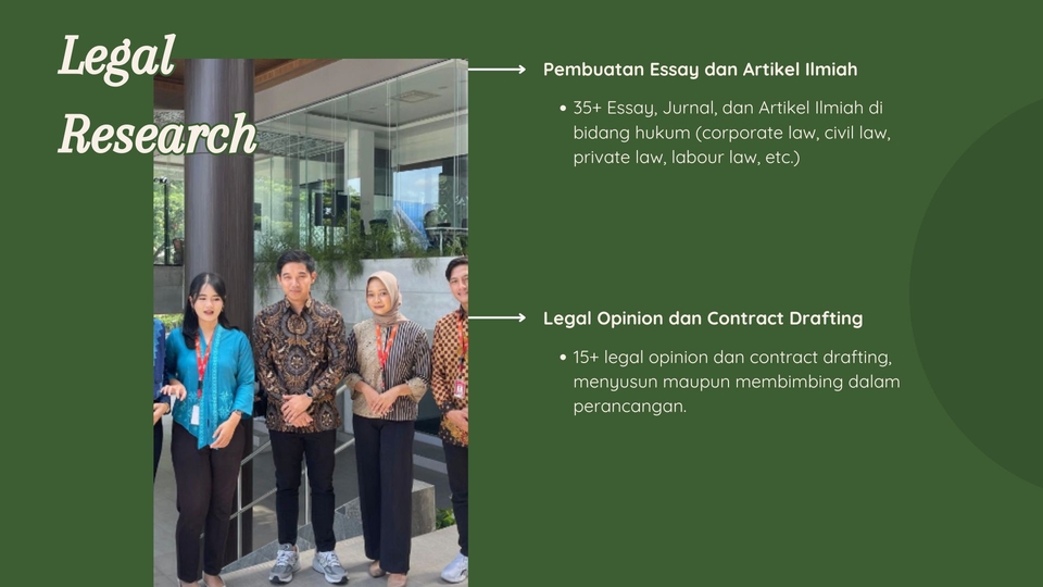 Saat ini berprofesi sebagai Auditor setelah 9 (sembilan) bulan bekerja sebagai Junior Legal Counsel di salah satu start-up. Lulusan Fakultas Hukum Universitas Sebelas Maret Surakarta yang fokus pada hukum bisnis dan telah bersetifikat Pendidikan Khusus Profesi Advokat (PKPA), Ujian Profesi Advokat (UPA), dan Certified Contract Drafter (C.C.D).