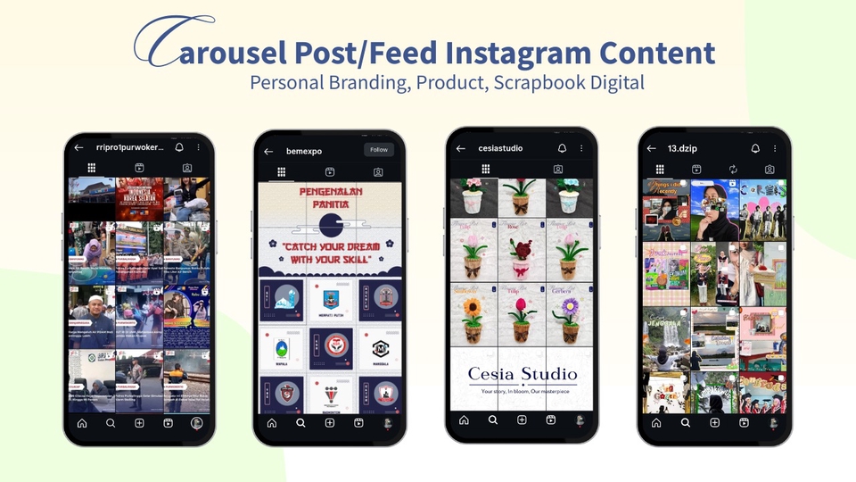 Pengen branding akun biar lebih rapi dan profesional tapi kamu mager? Tenang, aku bisa bantu bikinin sesuai gaya yang kamu mau. Aku biasa ngerjain konten untuk personal branding, bisnis produk UMKM, edukasi, sampai scrapbook yang lucu-lucu. Kamu tinggal kasih konsep atau isi kontennya, nanti aku bantu wujudkan jadi visual yang menarik dan siap upload. Apa yang bakal kamu dapat: -Desain sesuai tema & moodboard kamu -Tampilan rapi dan nyaman dibaca -Warna & font konsisten biar feed makin cantik -Revisi sesuai paket Aku selalu berusaha bikin desain yang nyambung sama karakter kamu atau brand kamu, jadi hasilnya lebih hidup dan punya feel-nya sendiri. Kalau ada referensi atau style khusus, tinggal kirim aja ya. Yuk kita bikin feed kamu jadi lebih menarik!