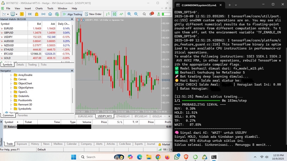 Robot trading dengan menggunakan algoritma neural network, bukan "logical rule based" seperti yang ada dipasaran - dilatih sebagaimana manusia trading - auto buy/sell/stop loss dan take profit (tidak ditentukan jumlah pips) - diperkaya feature engineering, tidak hanya ditraining dari data mentah - membatasi resiko harian (default 5%, dapat diubah sesuai request) Ready untuk robot trading timeframe 15 menit Menerima jasa pembuatan kostumisasi robot trading dengan tambahan biaya