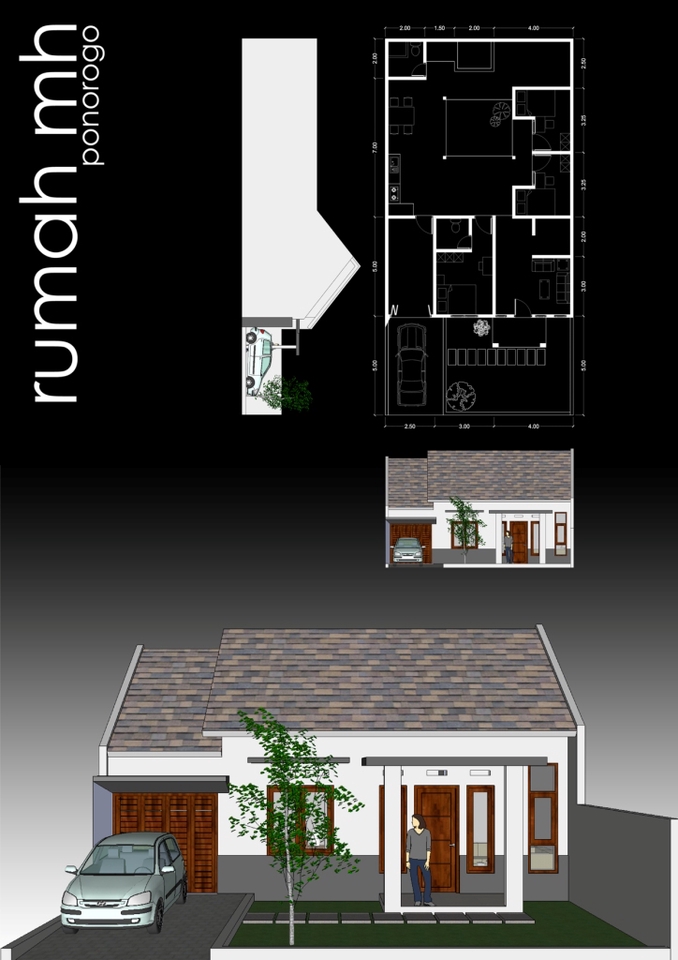 Rp950,0 rbDenah, Tampak 2 sisi, Potongan 2 sisi, Rencana Pondasi, Rencana Atap, Rencana Plumbing, Siteplan File format pdf Revisi maksimal 1 kali