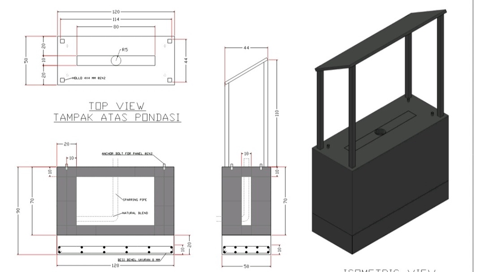 Rp400,0 rbGambar 2D Dengan 4 sisi tampak Atas tampak depan tampak kiri dan kanan menggunakan Dimension dan 3D dengan 10 kali revisi
