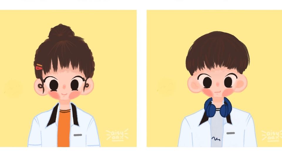 Rp100,0 rbIlustrasi orang dari kepala hingga dada. (Gratis aksesoris dan hewan peliharaan kecil seperti kucing, burung) Tanpa Background atau Menggunakan warna solid. terhitung satu karakter.