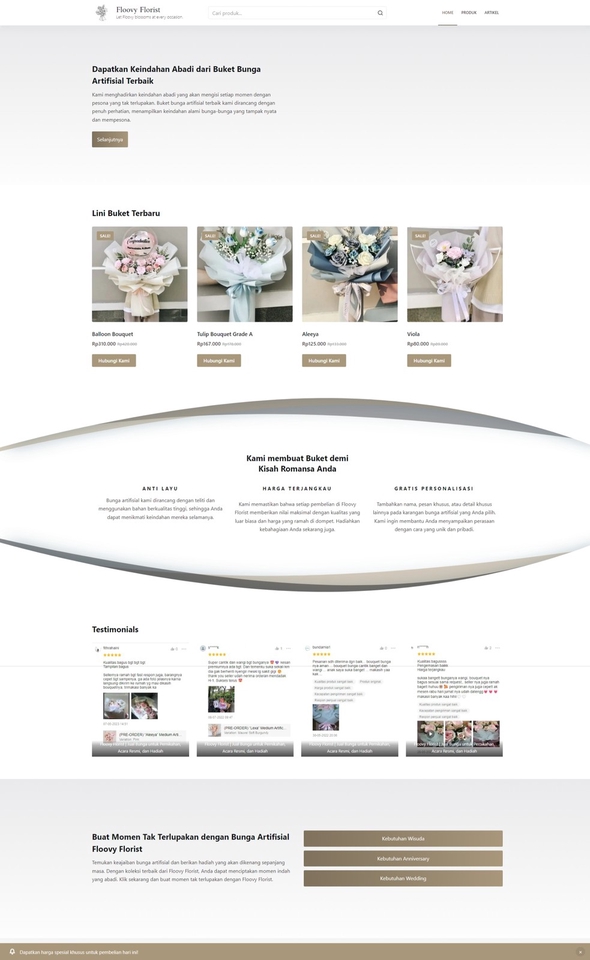 Saya seorang konsultan IT (mantan Garuda TV, Ardiles, dll) dan digital yang bekerja mandiri yang didorong oleh passion yang mendalam untuk membimbing bisnis menuju kesuksesan di era digital saat ini. Dengan catatan kerja yang solid dalam menyediakan solusi yang berorientasi pada klien, termasuk memimpin startup, membuat situs web khusus, dan mengintegrasikan plugin WordPress dengan lancar, saya berusaha untuk meningkatkan bisnis menuju potensi penuh mereka. Langkah Pekerjaan 1. Riset Kompetitor 2. Pemesanan Domain dan Hosting 3. Wireframing 4. Polishing