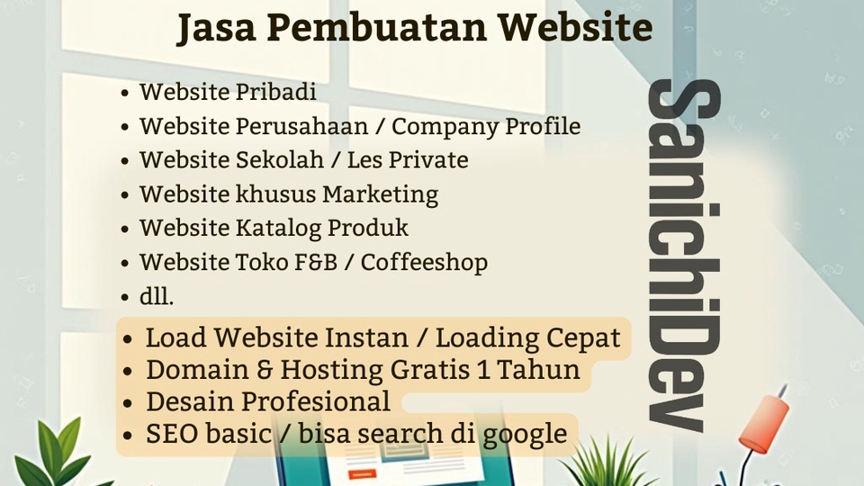 Lagi butuh bantuan untuk buat website yang profesional dan cepat ? yuk Saya bantu, berikut list yang mungkin anda sedang butuhkan : - Website Pribadi - Website Perusahaan / Company Profile - Website Sekolah / Les Private - Website khusus Marketing - Website Katalog Produk - Website Toko F&B / Coffeeshop - tidak ada di list ? coba konsultasikan, saya akan bantu semaksimal saya Tahap Pengerjaan : 1. Konsultasi Awal, Anda sedang butuh website apa, apakah ada referensi ? 2. Analisis kebutuhan 3. Proposal dan penawaran 4. Desain konsep 5. Pengembangan / Pengerjaan 6. Testing dan Revisi 7. Penyerahan