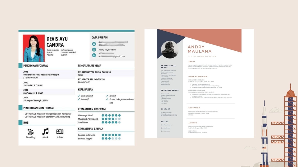 Desain CV / Resume Modern Professional (1 hari jadi)