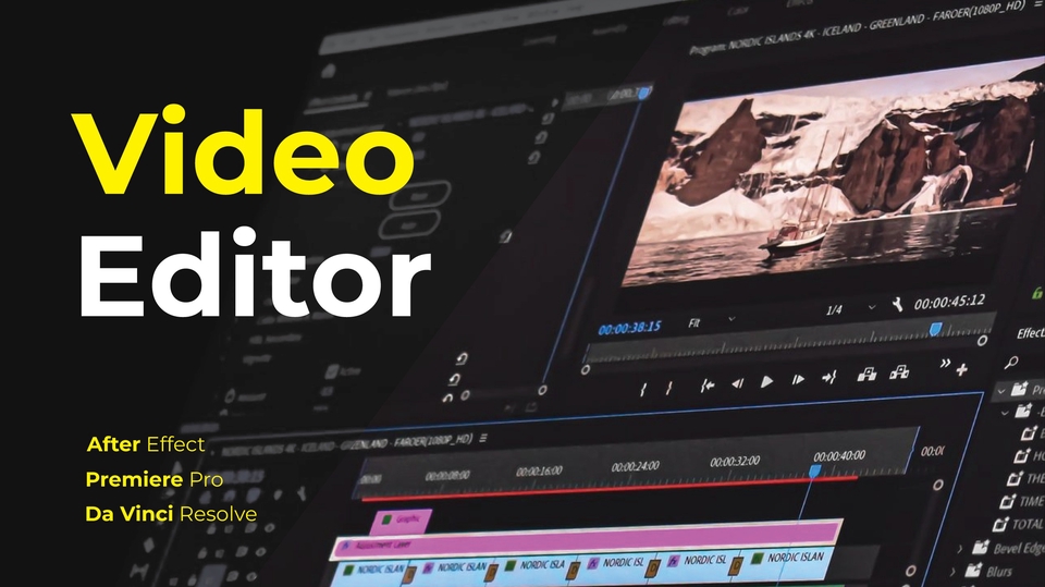Transformasikan ide jadi video yang powerful dan engaging. Spesialis dalam editing video YouTube, konten promosi, cinematic, dan video presentasi. Tools: Premiere Pro, After Effects, DaVinci Resolve, Capcut - Fast turnaround - Kualitas broadcast - Siap revisi sesuai kebutuhan