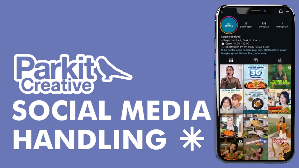 Rp5,0 jt20 feed instagram/bulan Conten Administratir Visit Semiggu max 2 Kali 8 Video Reels Durasi 15-60 Sec Content Plan & Strategi Content Pillar 1 Bulan Unlimited Design untuk kebutuhan Percetakan (Poster, Xbanner, Menu ETC) 10 InstagramStory ( greetings, promo, interactive, etc) Social Media Insight Report monthly Meta ADS (budget from client