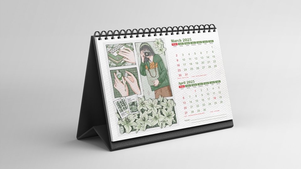 Halo! Selamat datang di penawaran desain kalender kami. Kami akan membantu untuk semua desain Kalender anda. Langkah Pekerjaan Untuk JASA DESIGN KALENDER MEJA/DUDUK 1. Diskusikan design tema kalender 2. Memberikan materi yang akan disematkan dalam Kalender Duduk 3. Pengerjaan Kalender duduk 4. Revisi File (bila ada) 5. Pengiriman file master design siap edit dan siap cetak Inilah yang Kami tawarkan untuk spesifikasi desain kalender: 1. Desain kalender berkualitas tinggi. 2. 300 dpi untuk resolusi (Resolusi tertinggi). 3. File siap cetak 4. Desain sederhana, modern, kekinian Terima kasih, Langkah Pekerjaan 1. Pilih paket yang kamu inginkan 2. Kamu mengirim brief (konten, warna dll)
