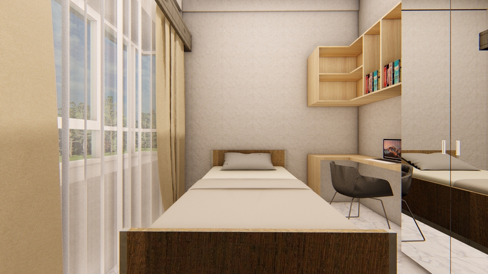 Rp3,0 jtAnalisis: 1. Analisis kebutuhan ruang 2. Analisis pencahayaan & Penghawaan 3. Analisis zonasi Konsep : 1. Konsep ruang 2. Konsep zonasi 3. Konsep Pencahayaan & Penghawaan 4. Konsep Material Desain : 1. Denah 2. Tampak 3. Potongan 4. Perspektif 5. Detail Furniture 6. Video Animasi fasad Desain <200m2