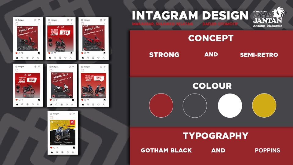 mampu membuat feed sosial media dengan segala jenis style poster yang ada dan juga selalu megikuti style poster yang sedang trend juga mampu membuat konsep branding dengan baik Langkah Pekerjaan 1. membuat brandstorming atau mengkonsep desain tersebut 2. lalu saya melakukan proses mindmapping yaitu mengecilkan atau memperdetail lagi konsep yang ada 3. lalu saya membuat gambar kasar seperti mambuat layouting desainnya menentukan font dan pallette warna yang cocok dengan konsep yang saya buat 4. lalu terakhir esekusi dan melakukan proses konsul atau revisi keapada client
