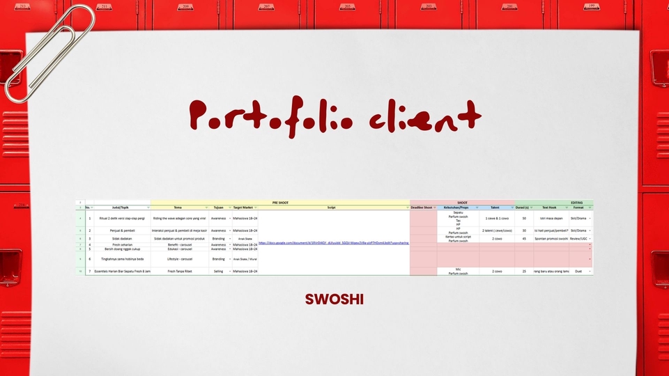 Rp350,0 rb- Pelanggan akan dapat brief konten 7 hari berisi konsep, copywriting, sound viral & referensi video. - Brief dikirim via Gsheet. - Paket hanya mencakup brief konten.