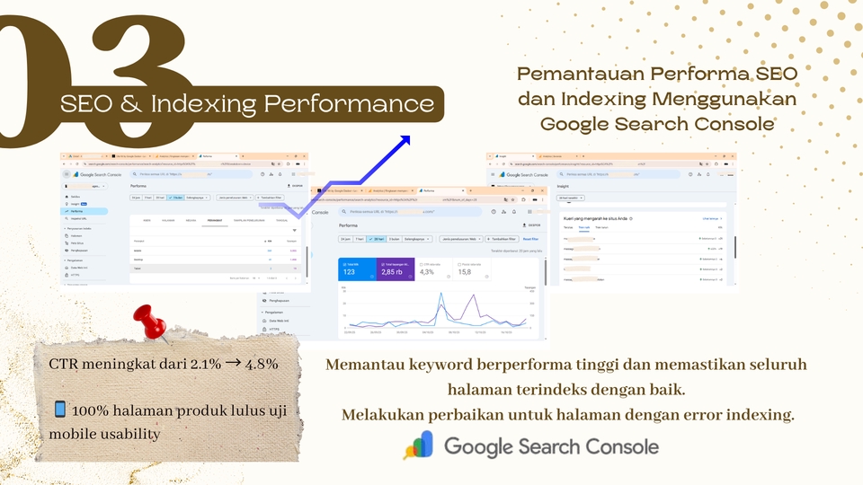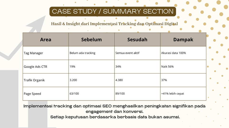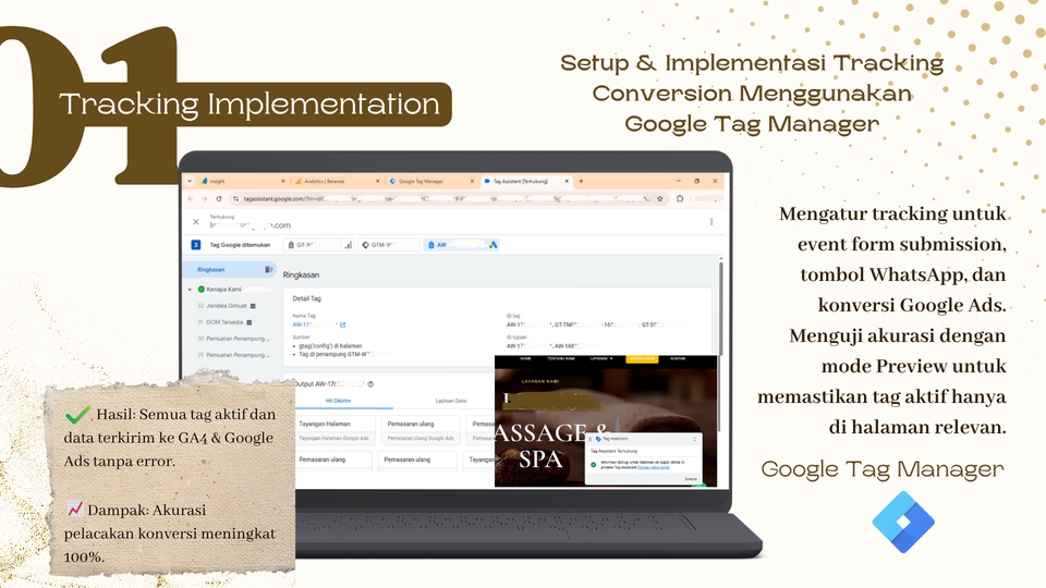 - • Setup tracking konversi (GTM / GA4 / Pixel)