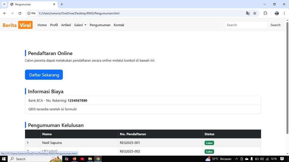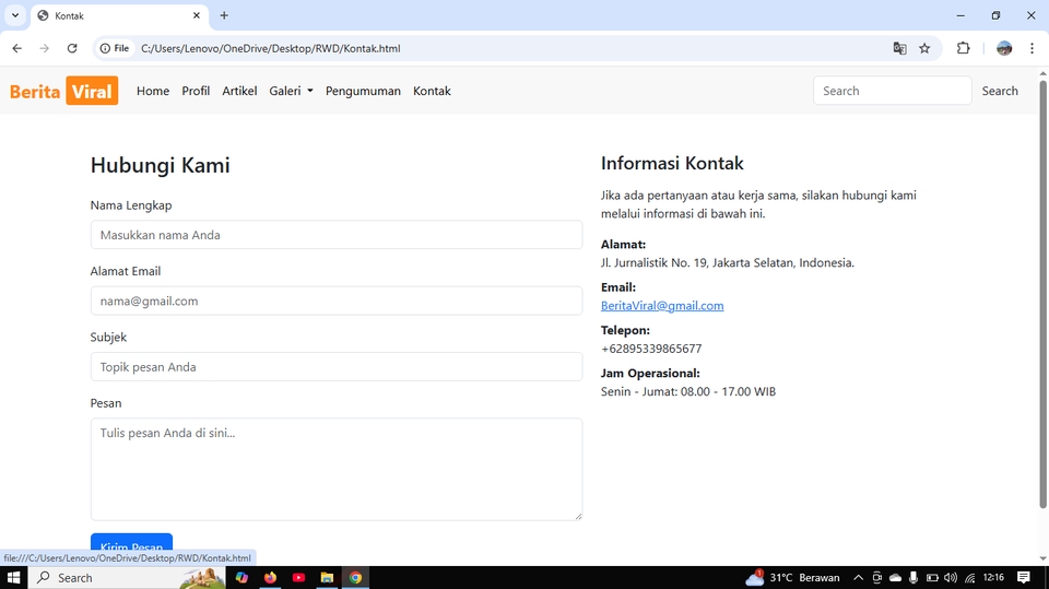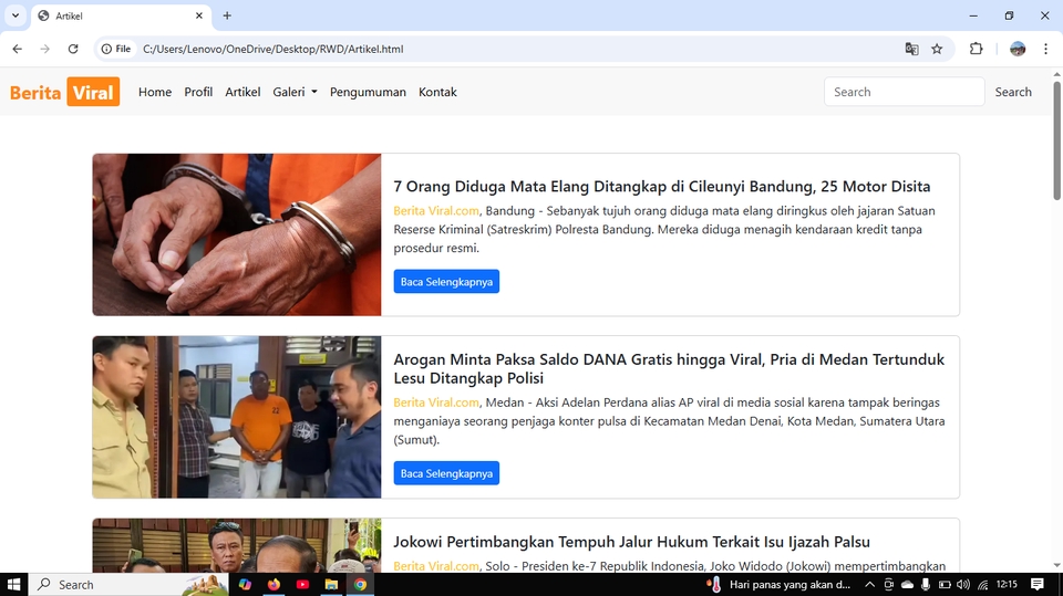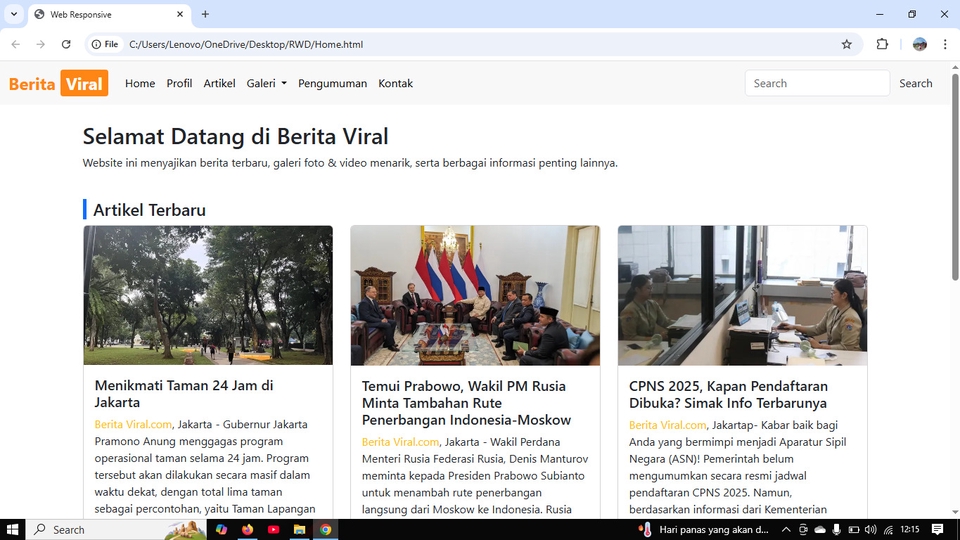 Website dengan yang menampilan beberapa berita terbaru menggunakan html&Responsive Web Design