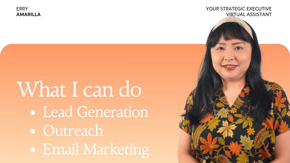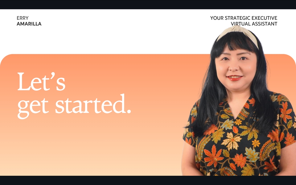 Saya adalah Virtual Assistant (VA) yang berfokus pada efektivitas komunikasi bisnis. Setiap proyek dilandasi strategi dan ketelitian, memastikan semua pekerjaan back-end Anda rapi dan teratur. Saya juga memiliki keunggulan desain profesional (Deck Presentasi, materi marketing, dll.) yang siap mendukung kebutuhan visual brand Anda, menjamin Anda tampil kredibel di hadapan klien.