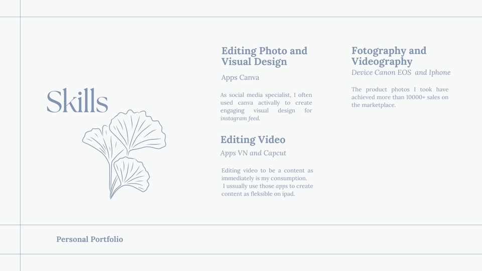 Merupakan seorang social media specalist dan conten creator dengan 3 tahun pengalaman. Sangat tertarik dengan fotography dan videography, suasana tenang seperti nuansa alam dan keestetikaan. Memiliki keterampilan copywriting dan english translator