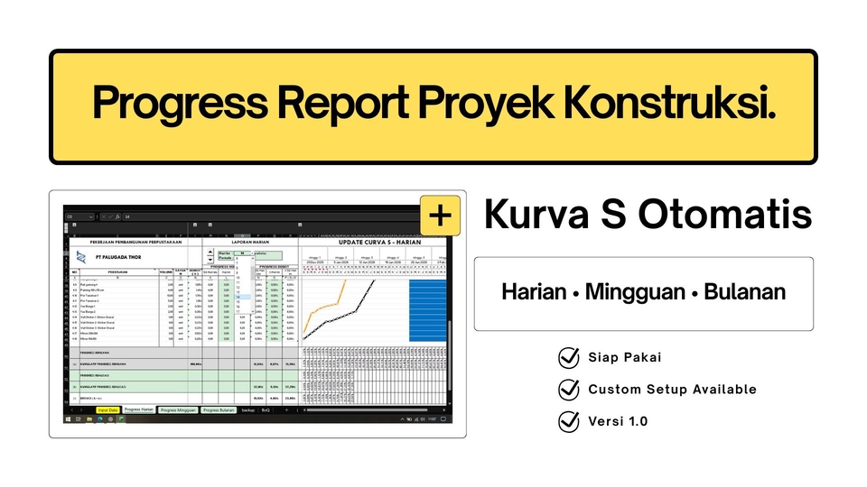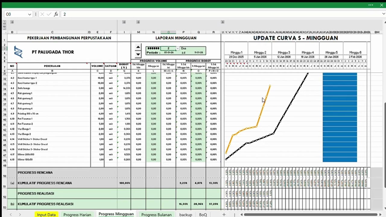 Template Excel Laporan Progress Proyek + Kurva S Otomatis