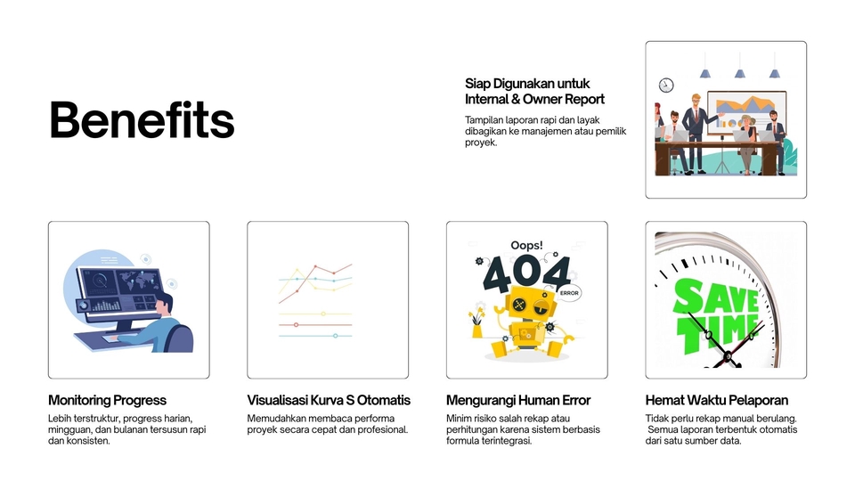*PROMO EARLY USER Produk ini adalah sistem laporan progress proyek konstruksi berbasis Microsoft Excel yang dirancang untuk mempermudah monitoring progres pekerjaan secara harian, mingguan, dan bulanan. Fitur utama: - Input progress harian dalam 1 sheet terpusat - Rekap otomatis laporan harian - Rekap otomatis laporan mingguan - Rekap otomatis laporan bulanan - Kurva S otomatis berdasarkan data input - Struktur BoQ sebagai dasar perhitungan progress - Sistem rumus terintegrasi (sheet backup terlindungi) Sistem ini cocok digunakan untuk: - Kontraktor - Site engineer - Project control - Owner internal monitoring *Catatan: *Untuk kebutuhan setup sesuai proyek dan data BoQ aktual, tersedia paket Custom Setup Project. *Produk ini adalah sistem pelaporan progress, bukan dokumen tender atau analisa penjadwalan teknis (CPM/Network Diagram).