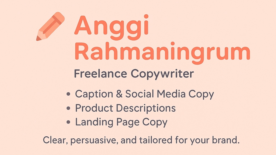 Beginner copywriter with a food industry background. Skilled in writing clear and structured content like SOPs and reports. I create social media captions, product descriptions, and landing pages—especially for F&B or local brands. Detail-oriented, creative, and ready to help your brand grow.