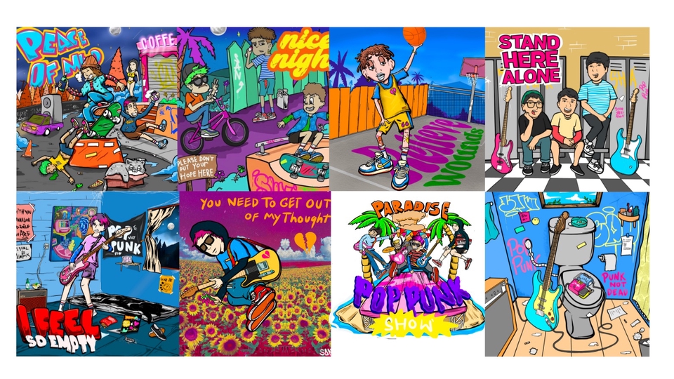 desain merchandise illustrasi band punk, poppunk,