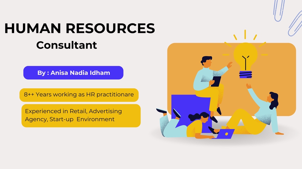 Lulusan S1 Psikologi dan S2 Psikologi Industri Organisasi. Saat ini memiliki 8++ tahun pengalaman dibidang Human Resources. Memiliki pengalaman dibidang recruitment, HR Admin, Compensation Benefit (penggajian, BPJS, Asuransi), HR Talent Management, Membuat salary increment scheme dan performance review untuk karyawan.