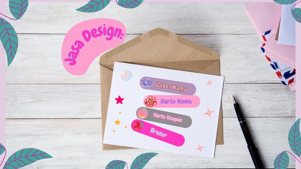 Design Kartu Nama, Flyer, Undangan Birthday Party, Stiker Label Nama