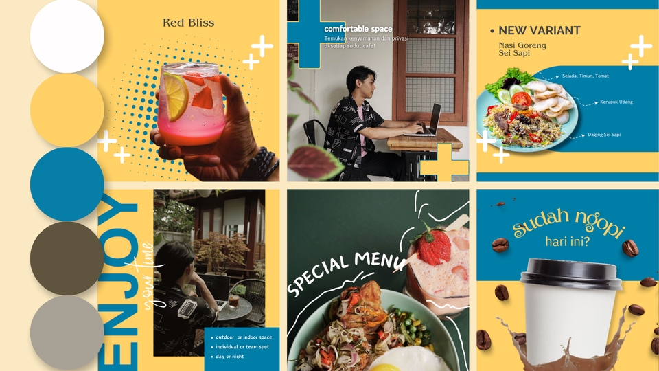 Rp320,0 rb- Diskusi dan pengembangan ide - Content plan - 12 konten feed + caption - Revisi minor sampai oke *revisi minor hanya penggantian warna, pergeseran letak elemen