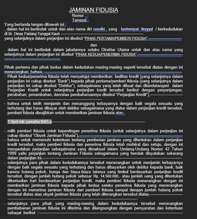 Layanan konsultasi dan drafting isi perjanjian/kontrak sebagai bahan atau referensi sebelum dibuat dalam Akta Notaris. Cocok untuk individu maupun pelaku usaha yang ingin memastikan substansi perjanjian jelas, adil, dan meminimalkan risiko hukum. Layanan ini tidak mencakup pembuatan Akta Notaris, melainkan membantu Anda: 1.menyusun draf perjanjian 2.meninjau isi klausul 3.memahami konsekuensi hukum setiap pasal 4.sebelum difinalisasi oleh Notaris. Ruang lingkup layanan: 1. Drafting perjanjian/kontrak (non-akta) 2.Review & perbaikan klausul perjanjian 3.Konsultasi isi perjanjian sebelum ke Notaris 4.Penyesuaian kontrak sesuai kebutuhan usaha 5.Identifikasi risiko & klausul penting Jenis perjanjian yang dapat dibantu: 1.Perjanjian kerja sama 2.Perjanjian sewa-menyewa 3.Perjanjian jual beli 4.Perjanjian kerja / freelance 5.Perjanjian usaha & kemitraan *Layanan ini bersifat konsultatif dan drafting dokumen. Pembuatan serta pengesahan Akta Notaris tetap dilakukan oleh Notaris yang berwenang.