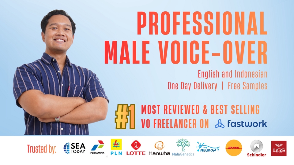 Male Voice-Over dengan review terbanyak di Fastwork! Penyelesaian 100% untuk lebih dari 600 pekerjaan! Belum yakin apakah suara saya cocok untuk proyek anda? Minta free sample saja! Saya menyediakan FREE SAMPLE tanpa dipungut biaya apapun! Saya menyediakan jasa voice over dalam bahasa Indonesia ataupun Inggris. Suara saya cocok untuk narasi, karakter, iklan, dan company profile. Cocok bagi anda yang memerlukan suara pria yang BERAT, dan BERBOBOT. Cek Sample-Sample VO saya disini: https://bit.ly/3oeHqqw Sample Proyek-Proyek yang Menggunakan VO saya: Narasi Indonesia: https://youtu.be/zJfr3I3Lq9s https://youtu.be/9ZcgXo56CuU https://youtu.be/xpZJAp72OQg Narasi Inggris https://youtu.be/868gFSNMRt8 https://youtu.be/n1Ll7XpGAOw https://youtu.be/1S0Qcg6aaXc Jasa saya menerapkan kebijakan NO REFUND yang ketat, jadi apabila belum yakin dengan suara saya, silahkan request untuk free sample terlebih dahulu utk menentukan kecocokan. Langkah Pekerjaan 1. Membaca naskah serta instruksi lainnya oleh klien 2. Merekam voice over 3. Mengedit voice over 4. Export rekaman menjadi .wav