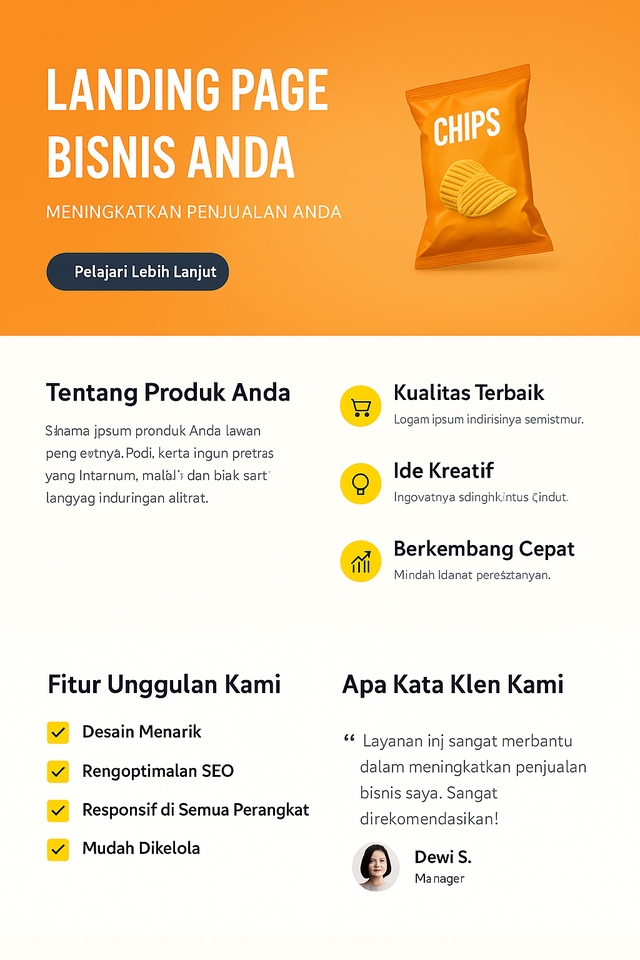 Rp1,4 jt- Desain Landingpage Premium (Disediakan/Desain Standar) - SEO On Page - Security SSL (https) - Gratis konsultasi after sales via WhatsApp - Gratis optimasi speed website - Bisa revisi konten *Belum Termasuk Domain & Hosting