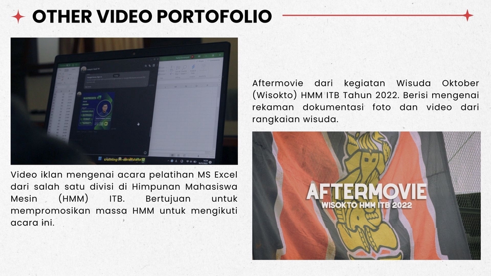 Halo! Saya baru memulai perjalanan di dunia freelance sebagai video editor. Di beberapa event atau organisasi yang saya ikuti, saya seringkali mengambil tanggung jawab dalam hal dokumentasi dan salah satunya terdapat video editing. Meski pengalaman saya masih sedikit, saya memiliki semangat tinggi untuk belajar dan memberikan hasil terbaik.