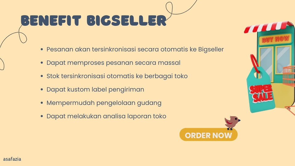 Rp2,0 jtIntegrasi toko online dengan Bigseller Upload produk/scrap produk maksimal 300 produk. Input SKU gudang dan update stok Memproses pesanan dan membuat pick up list
