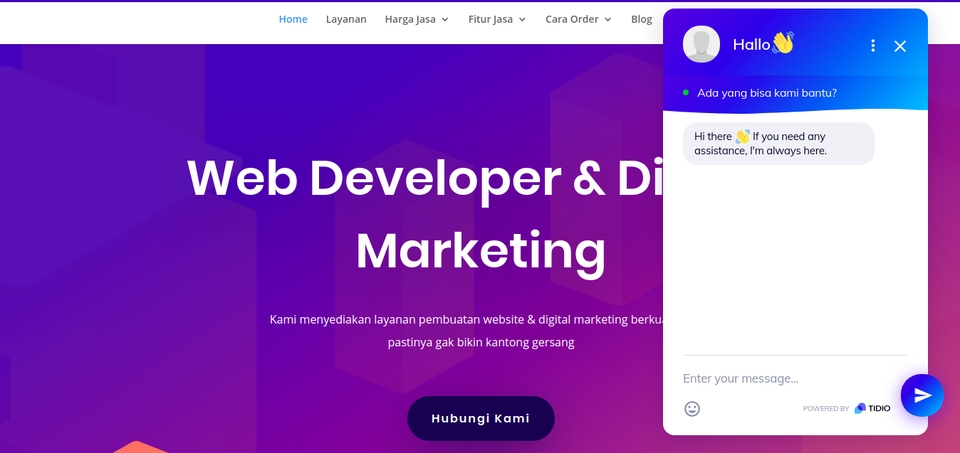 Rp4,0 jt- Hosting + Domain & SSL - SEO Friendly - Contact Form - Responsive - Revisi maksimal 3 kali Website Company Profile: - 5 halaman landing page - Optimasi SEO - Fitur Chat WhatsApp/Live Chat - Free support selama 2 minggu Untuk Toko Online Standar: - Fitur order via WhatsApp - Termasuk upload 10 katalog produk - Optimasi SEO - Free support selama 2 minggu