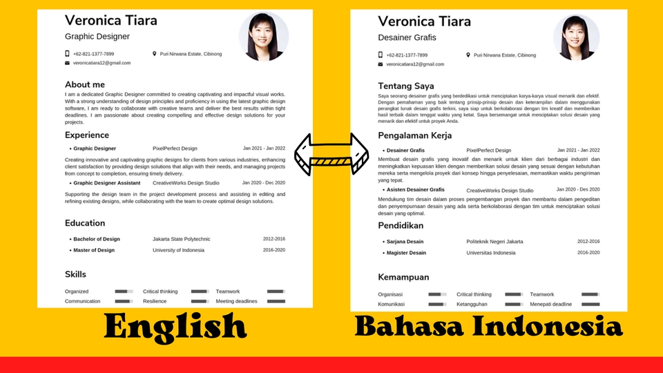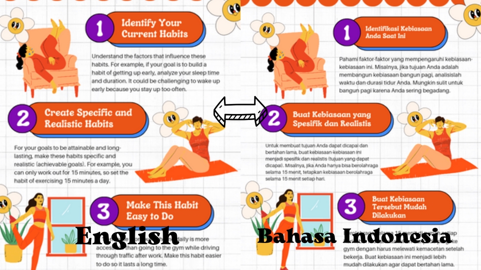 Dapatkan Jasa Terjemahan Profesional Inggris-Indonesia & Indonesia-Inggris! - Terjemahan diperiksa ejaan & tata bahasa: dokumen asli (PDF, Word), CAT tools, Grammarly. - Terjemahkan buku, cerita pendek, puisi, lirik lagu, essay, website, transkrip, dll. - Spesifikasi & layout disesuaikan dengan kebutuhan Anda. - Termasuk proofreading, cek error spelling & grammar, editing. - Revisi tak terbatas. - Jaminan kualitas dengan sertifikat EF SET (skor 71/100, tingkat C2 Proficiency). - Harga terjangkau. **Catatan Penting:** 1. Waktu Pengerjaan: Estimasi sesuai tingkat kesulitan dokumen. Fleksibel, namun menjaga kualitas. 2. Komunikasi: Tanggapan mungkin membutuhkan waktu, terutama untuk proyek rumit. 3. Revisi & Perbaikan: Siap melakukan revisi sebanyak yang diperlukan. 4. Kualitas Terjemahan: Berkomitmen memberikan terjemahan berkualitas tinggi dengan kompetensi terverifikasi. 5. Batasan Terjemahan: Untuk terjemahan hukum, medis, atau teknis yang sangat spesifik, hubungi kami untuk pembahasan lebih lanjut. 6. Kerahasiaan: Dokumen yang Anda berikan dijaga kerahasiaannya dengan baik. Terima kasih atas kepercayaan dan kesempatan. Kami berusaha memberikan layanan terbaik. Langkah Pekerjaan 1. Konsultasi: Klien memberikan deskripsi pekerjaan yang diinginkan. 2. Penawaran dan Persetujuan: Saya memberikan penawaran harga dan detail pekerjaan. Klien memberikan persetujuan. 3. Pengiriman Dokumen: Klien mengirimkan dokumen yang akan diterjemahkan. 4. Penerjemahan: Saya melakukan penerjemahan dengan cermat dan akurat. 5. Proofreading dan Revisi: Saya melakukan proofreading dan revisi jika diperlukan. 6. Pengiriman Hasil: Saya mengirimkan hasil terjemahan kepada klien.