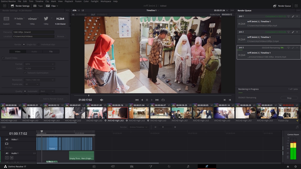 hai, perkenalkan saya Aziz, seorang video editor. saya siap membantu anda untuk merangkai berbagai klip yang ada. perangkat utama yang saya gunakan adalah backmagic davinci resolve. Langkah Pekerjaan 1. brief kebutuhan dan ketentuan 2. serah terima file yang akan di edit 3. proses editing 4. pengriman draft awal (low resolution, dengan watermark) 5. revisi (masukan, item tambahan dll) 6. proses editing akhir 7. pengiriman editing (approval, low resolution, dengan watermark) 8. pengiriman file master (tanpa watermark, high resolution)