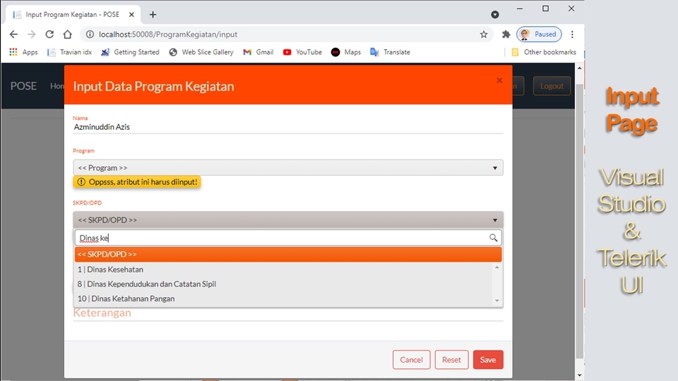 I have more than 11 years of experience in the world of Software Development. Tools: C#, VB.NET, Pascal, ASP.NET MVC, SQL Server, My SQL, HTML, CSS, Bootstrap, AJAX, JSON, JQuery, XML, JavaScript, Telerik UI & Report, etc. Develop Impressive and Modern Software (Web or Desktop); Friendly and Good UI & Report; Focus on Quality; Express and Snappy; Reasonable Cost; Responsive; Originally Create by My Own Hand Written; User Acceptance Testing and Free Revision; Free Online Training; Free Maintenance (free for 1 week); With Source Code With Documentation (Help Book); Easy Modified and Easy to Change Afterward; Thanks, Azminuddin Azis Langkah Pekerjaan 1. Kontrak kerja 2. Analisis (komunikasi dengan pelanggan) 3. Desain sistem/aplikasi/web (blueprint) 4. Pengiriman dan persetujuan sistem/aplikasi/web yang diusulkan (blueprint/demo) 5. Konstruksi pengembangan sistem/aplikasi/web 6. Pengujian sistem/aplikasi/web 7. Pengiriman sistem/aplikasi/web ke pelanggan dan dokumentasinya (Help) 8. Pelatihan kepada pelanggan secara online via Team Viewer atau lainnya 9. Pengujian oleh pengguna (User Acceptance Testing) dan perbaikannya jika ada 10. Selesai dan free maitenance/pemeriharaan selama 3 bulan