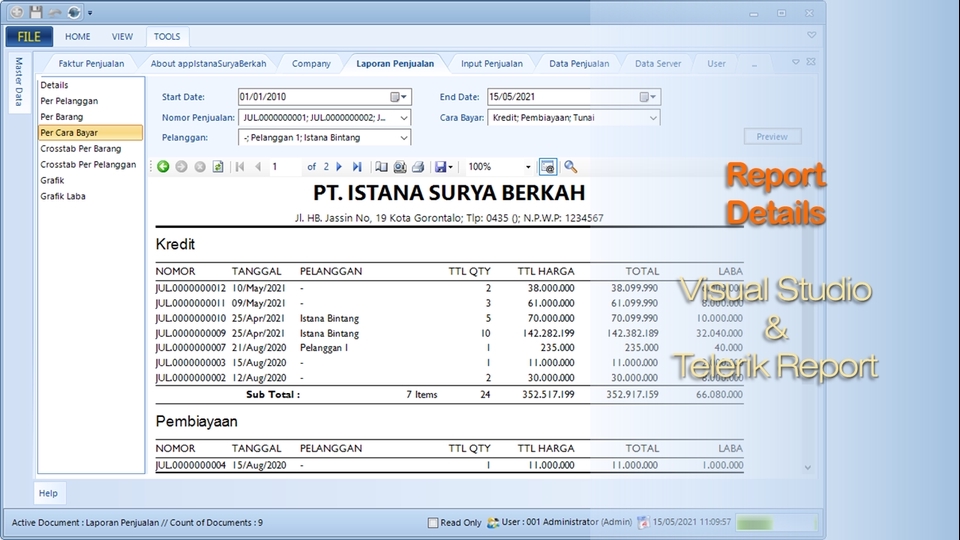 Software Development with C# or VB.NET, ASP.NET MVC, SQL, Telerik UI & Report, etc.
