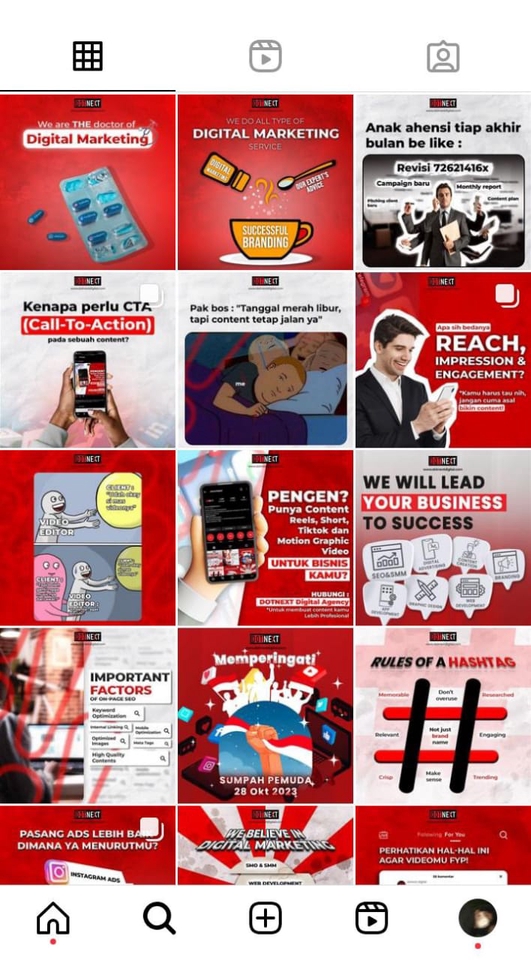 Rp650,0 rb- 15 Content plan (platform yang sama) - Revisi Max. 2x - Ads on 5K (untuk 1 tambahan content plan) - Design (feed/story) - Revisi Max. 1x - Ads on 20K (untuk 1 tambahan design) * Ads on 15K (untuk tambahan/1 ads content)