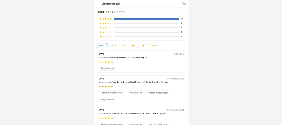 Joki Genshin Impact Trusted Fast Respon: 10:00-12:00, 14:00-16:00, 18:00-20:00, 21:00-23:00 Slow Respon: 06:00-09:00, 12:00-14:00, 17:00-18:00, 20:00-21:00 Rest 😴: 00:00-06:00 Profesional✅ Friendly🙏 Rawat Akun👌 Ascend👌 Explore Map👌 Custom👌 Semua bisa disini 👍 Melayani juga Request Joki Wuthering Wave, Honkai Star Rail, Zenless Zone Z, Honkai Impact 3, & SnowBreak 🎮🧑‍💻