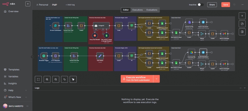 - • Dalam 1 Workflow hanya terbatas 2 jenis output (Gmail dan Telegram, ataupun lainnya)