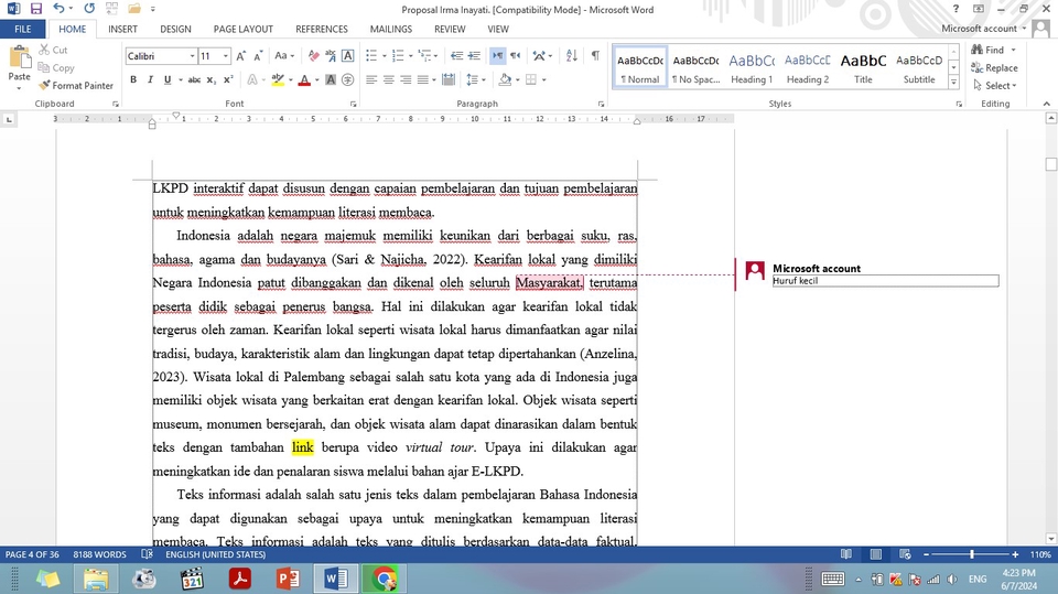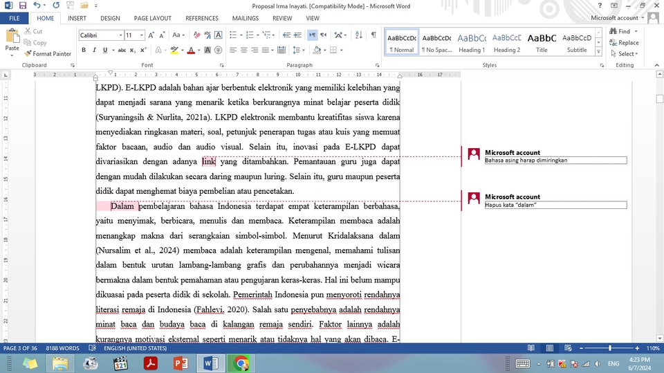Lulus dari Prodi Magister Pendidikan Bahasa, memiliki pengalaman menulis karya ilmiah, esai, tesis, skripsi dan jurnal. Terbiasa menggunakan kaidah kebahasaan yang sesuai Ejaan Bahasa Indonesia. Terlatih dalam memeriksa dan mengoreksi letak kesalahan pengetikan, ketidakbakuan bahasa, ketidakefektifan bahasa. Langkah Pekerjaan 1. Memberi tahu spesifikasi apa yang dikehendaki 2. Memberikan file yang akan diproofreading 3. Melakukan kesepakatan 4. Projek dikerjakan dan direvisi