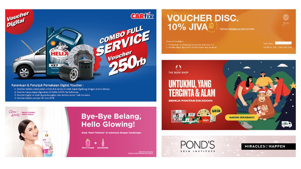 Banner merupakan sebuah sarana promosi yang dapat menunjang potensial market bagi sebuah Brand, daya tarik nya secara visual dan konten juga sangat membantu dalam memberikan informasi kepada target audience. Saya sebagai seorang Desainer Grafis akan memberikan usaha yang baik dalam membantu untuk membuat Desain Banner sesuai kebutuhan anda. Langkah Pekerjaan 1. Brief diberikan oleh klien, lalu diproses dalam hal diskusi dan kesepakatan bersama. 2. Setelah mendapat brief yang jelas, Desainer akan mengolah dan mengerjakan kebutuhan Desain Banner sesuai dengan paket yang dipilih. 3. Setelah selesai, Banner akan dikirim kan kepada klien untuk dapat di preview kembali jika sudah sesuai dengan brief awal yang diberikan.