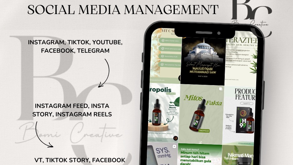 Saya Arrum Putri dari Bomi Creative, lulusan FSRD UNS Surakarta. Berpengalaman 5+ tahun di bidang desain, 2 tahun social media specialist, dan 1 tahun digital marketing. Fokus pada content creation, foto & video editing, serta branding media sosial. Keunggulan saya: sesuai kebutuhan klien, fast response, dan revisi fleksibel.