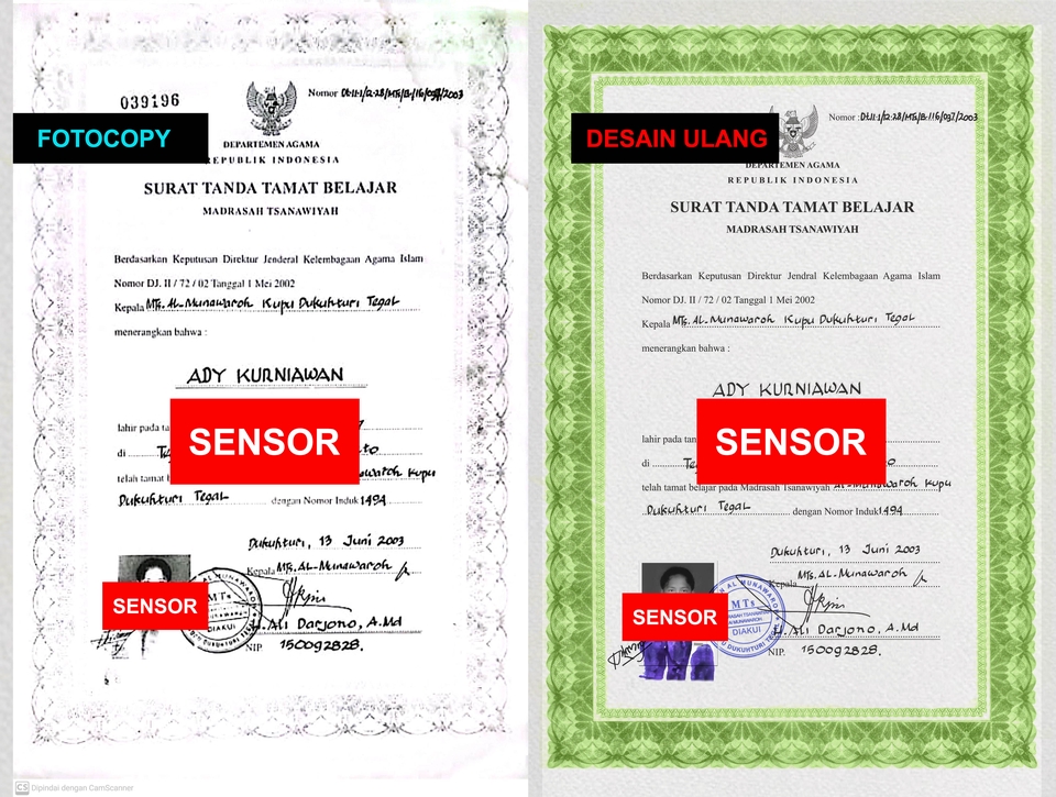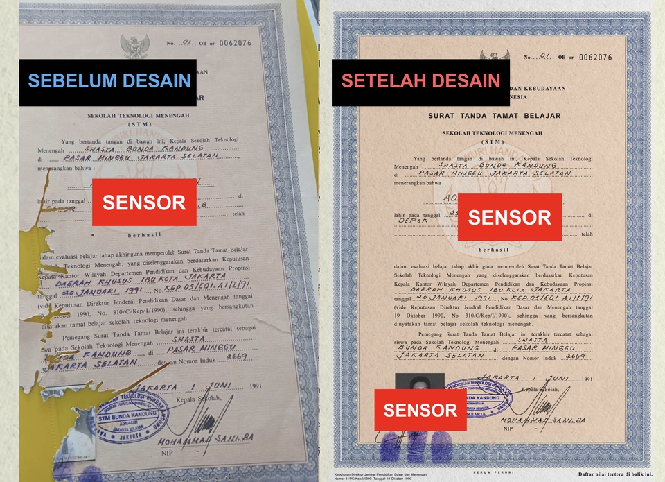 MELAYANI SEMUA DOKUMEN ========================= - A.K.T.A - I.J.A.Z.A.H - K.T.P - K.K - S.U.R.A.T T.A.N.A.H - S.E.R.T.I.F.I.K.A.T . S.K - S.T..R.U.K / K.W.I.T.A.N.S.I - A.K.T.A C.E.R.A.I - B.U.K.U N.I.K.A.H - DLL EDITING / DESAIN DOKUMEN RUSAK / KELUPAS / KENA NODA/ MENGHILANGKAN ROBEKAN/ BERCAK, RESOLUSI RENDAH, BLUR / MEMPERTAJAM TEKS / FOTOCOPY JADI WARNA, SEMUA KONDISI jika objek teks dokumen hilang, sertakan sampel untuk referensi, agar hasil akurat sesuai ASLI Kami sangat menjaga originalitas dokumen, dengan tidak merubah teks atau objek dokumen apapun, kecuali hanya memperjelas huruf2 atau melengkapi teks yang hilang untuk edit huruf, kami tidah edit dengan teks ketikan, namun d edit satu per satu huruf agar menyatu dengan objek dasar, sehingga hasil editan akan terlihat natural Diskusikan sebelum order, kami akan kerjakan sesuai intruksi, untuk revisi bebas sampai selesai Langkah Pekerjaan 1. KIRIM FILE DAN DISKUSIKAN 2. HARGA TERGANTUNG DARI KETERANGAN EDIT 3. SETELAH DISKUSI EDIT, KAMI ESTIMASIKAN HARGA 4. JIKA SEPAKAT BISA LANJUT TRANSAKSI 5. HASIL NANTI DI KOREKSI, JIKA ADA YANG TIDAK SESUAI BOLEH REVISI 6. REVISI HARUS YANG BERKAITAN DENGAN INTRUKSI EDIT ATAU FILE DOKUMEN ASLINYA